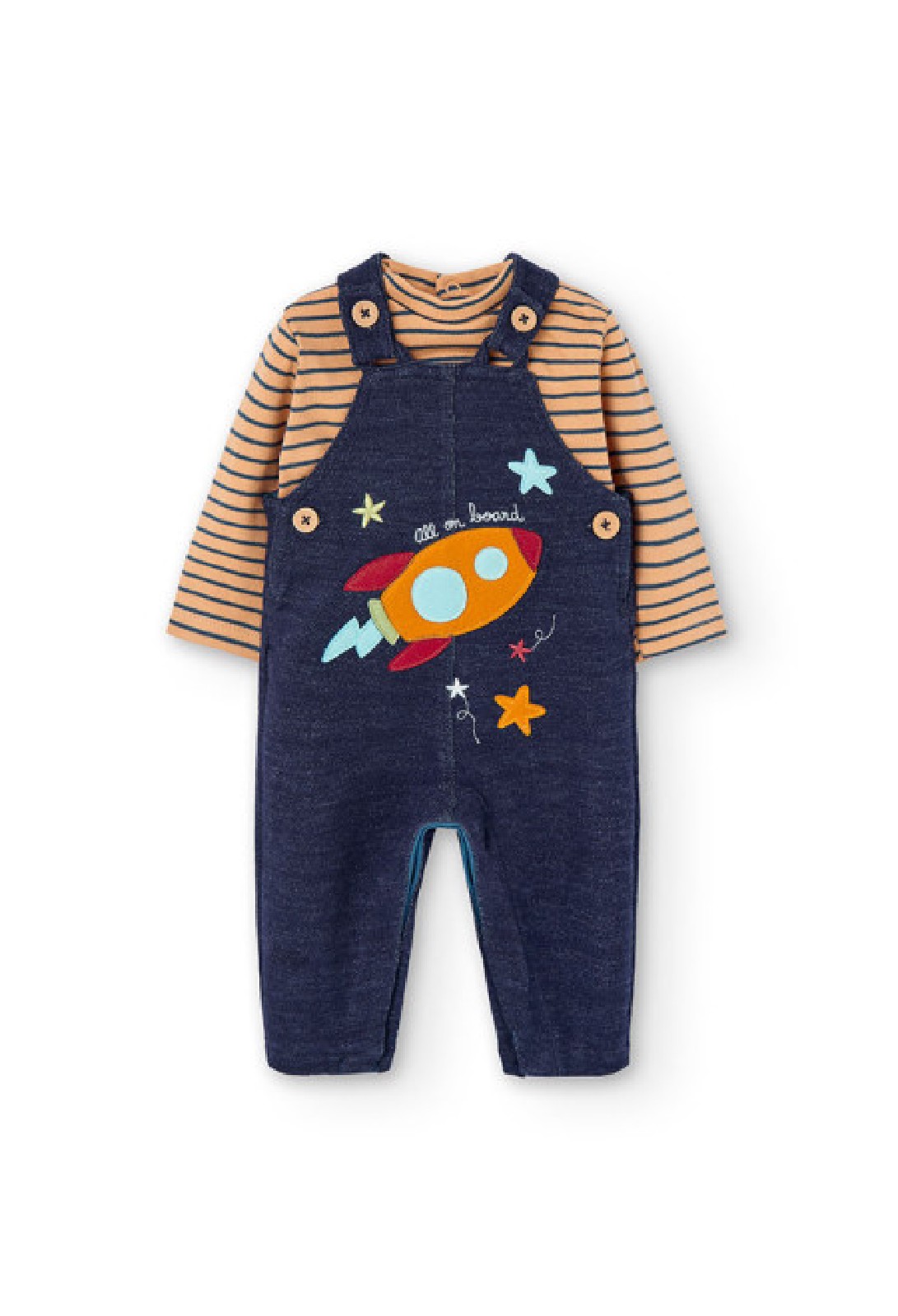 BOBOLI Set di maglietta e salopette jeans per neonato LISTATO