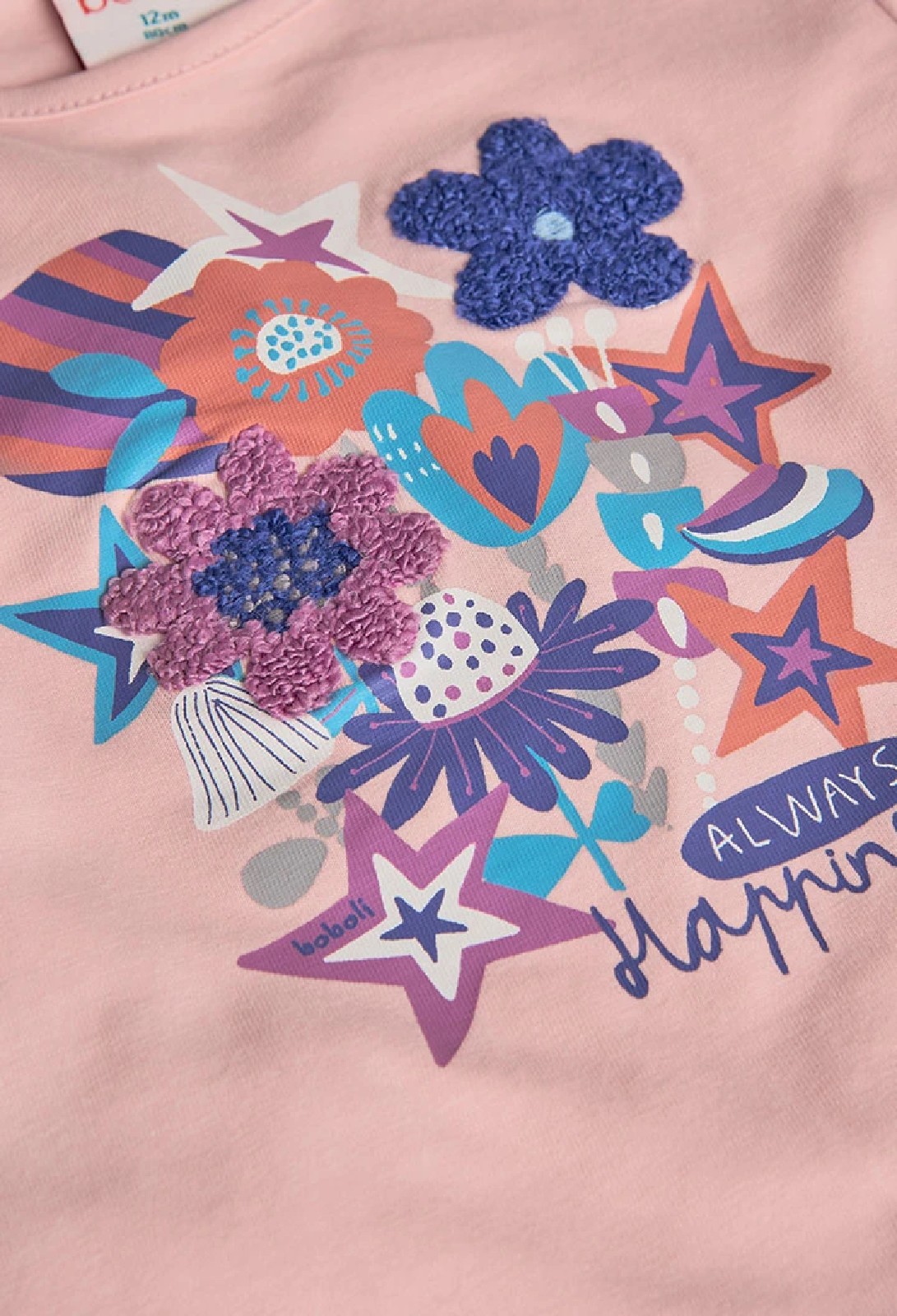 BOBOLI Maglietta rosa a fantasia per bambina a maglia blush
