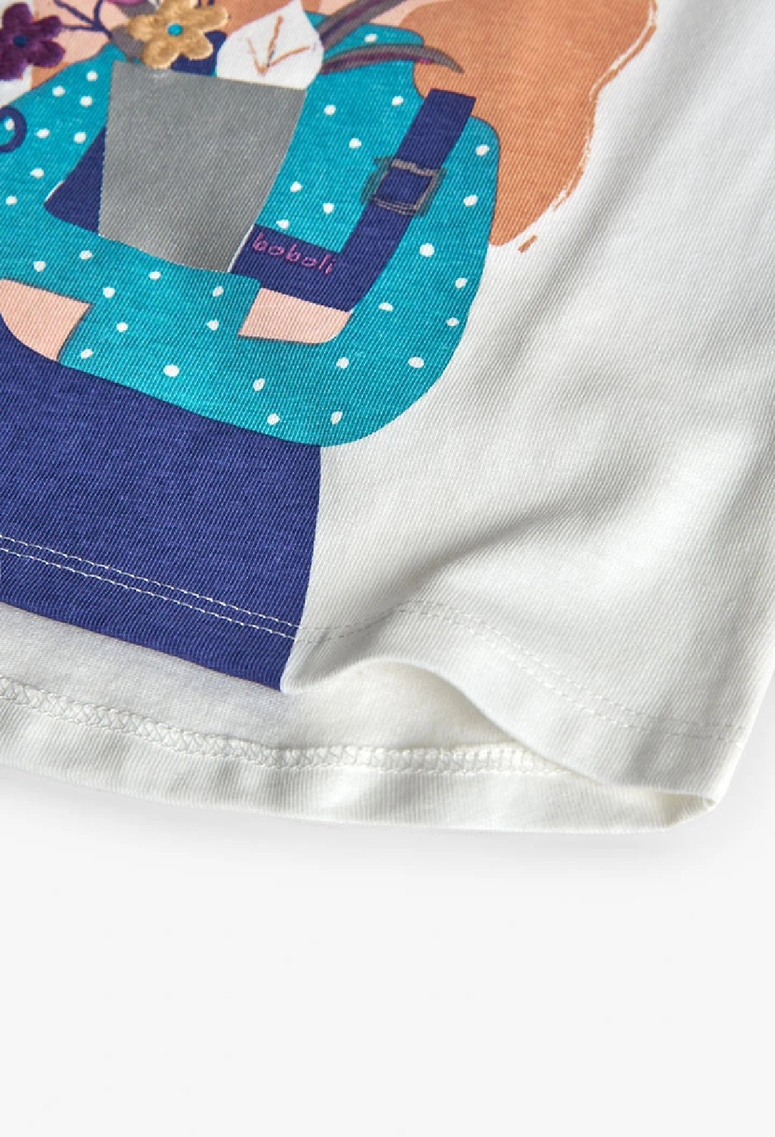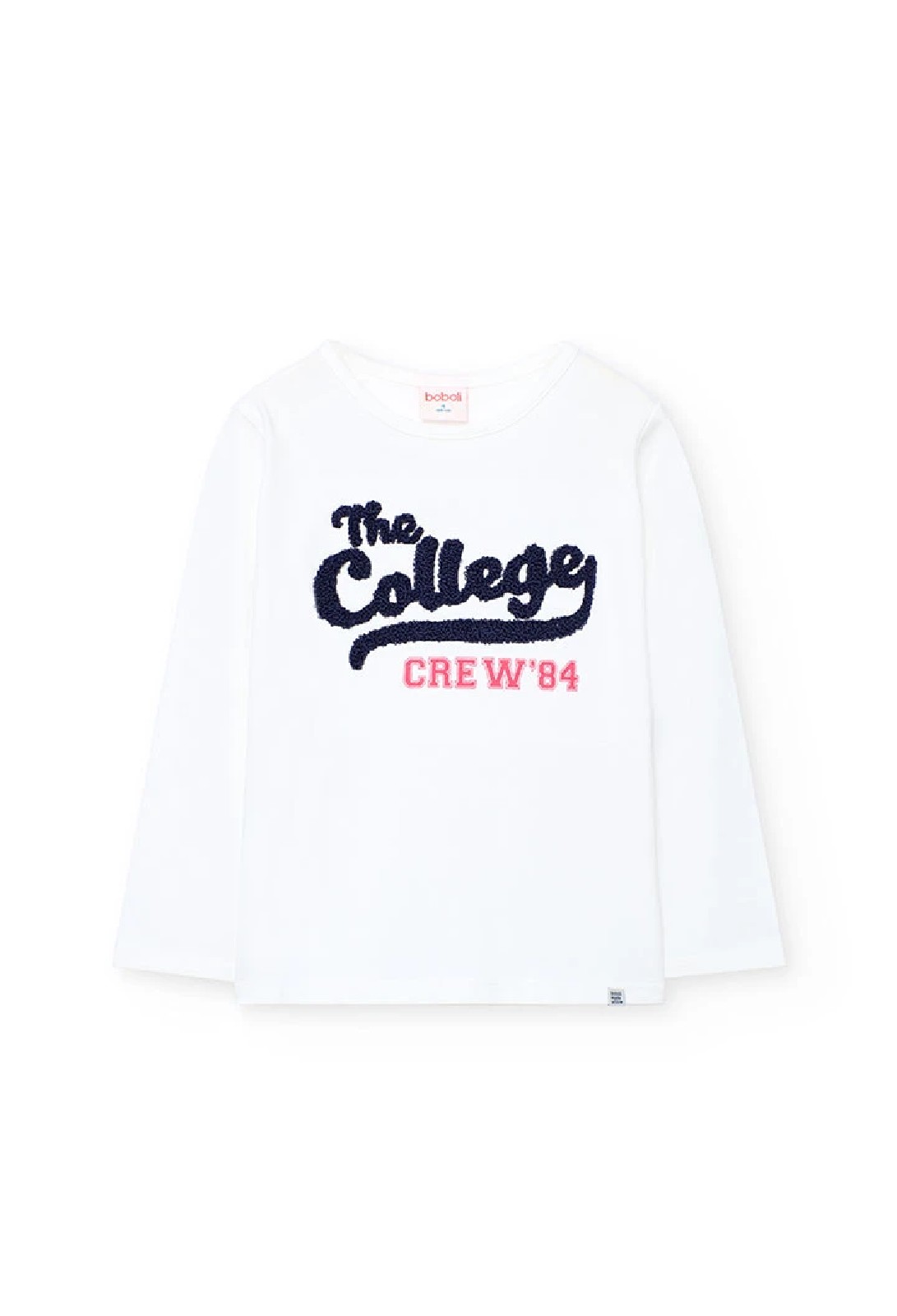 BOBOLI Felpa garzata per bimba con stampa e applicazioni fondo bianco 211015