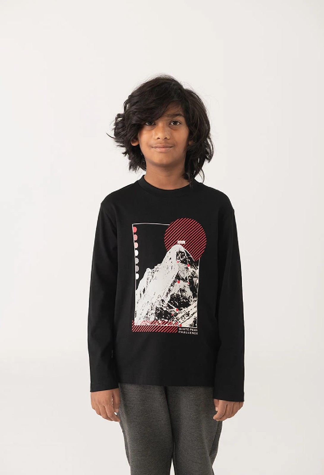 BOBOLI Maglietta bambino cotone nero montagna 532033
