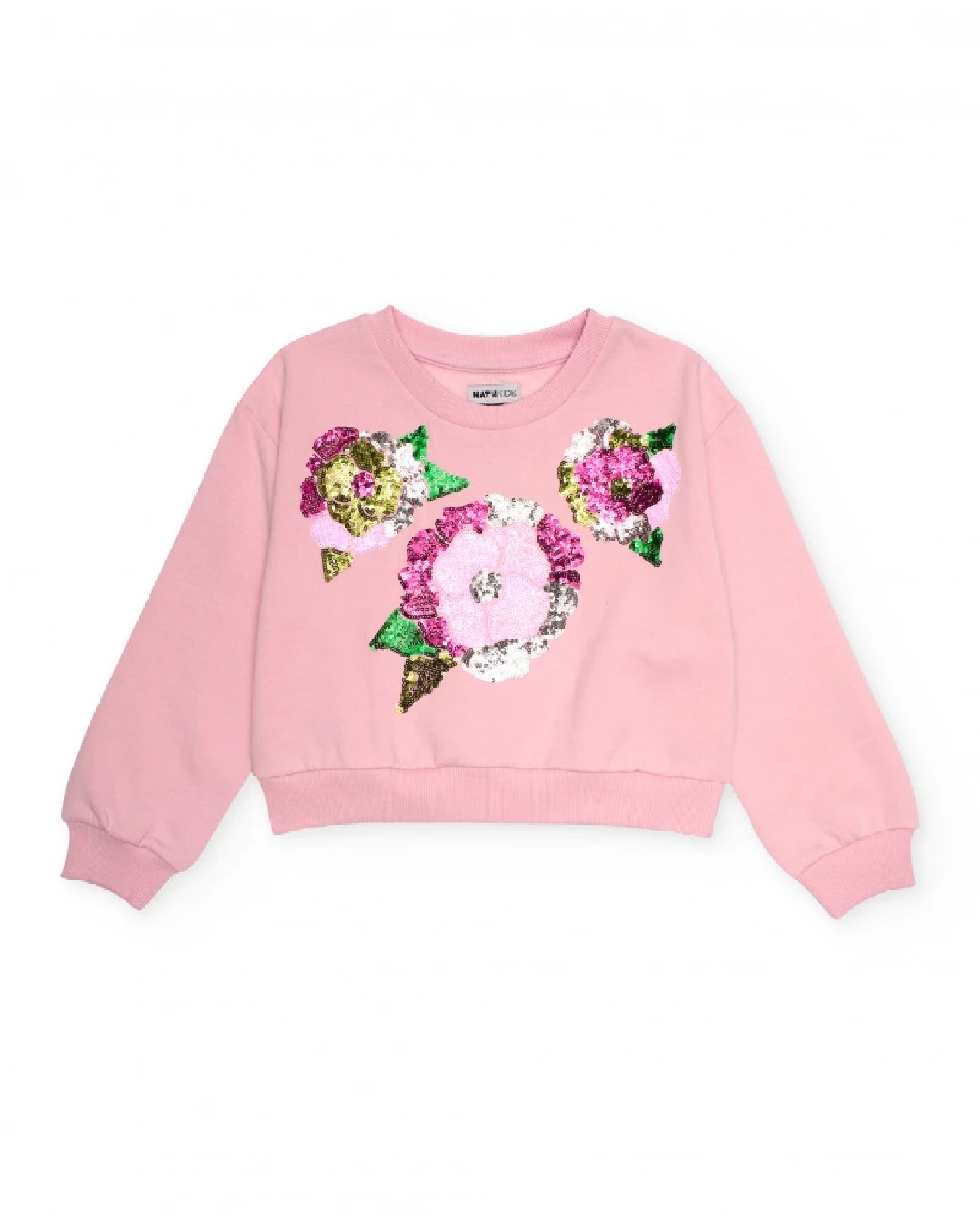 NATH KIDS Felpa rosa con fiori di paillettes per bambina PINK