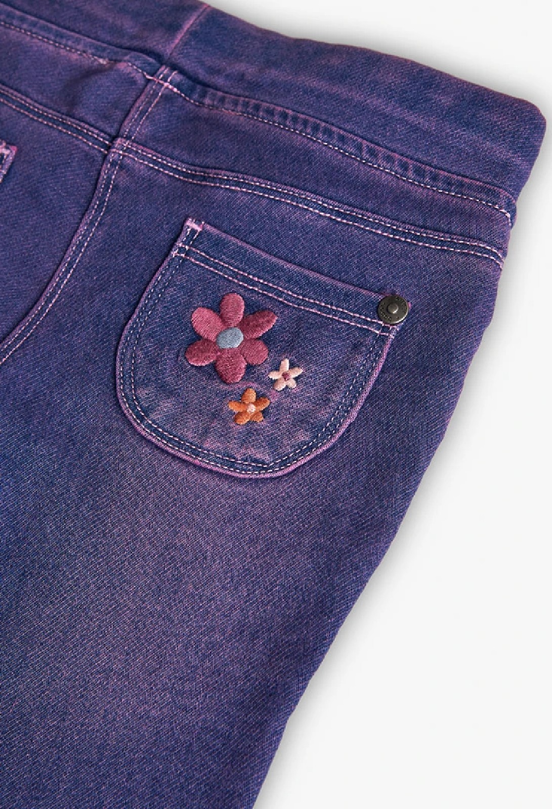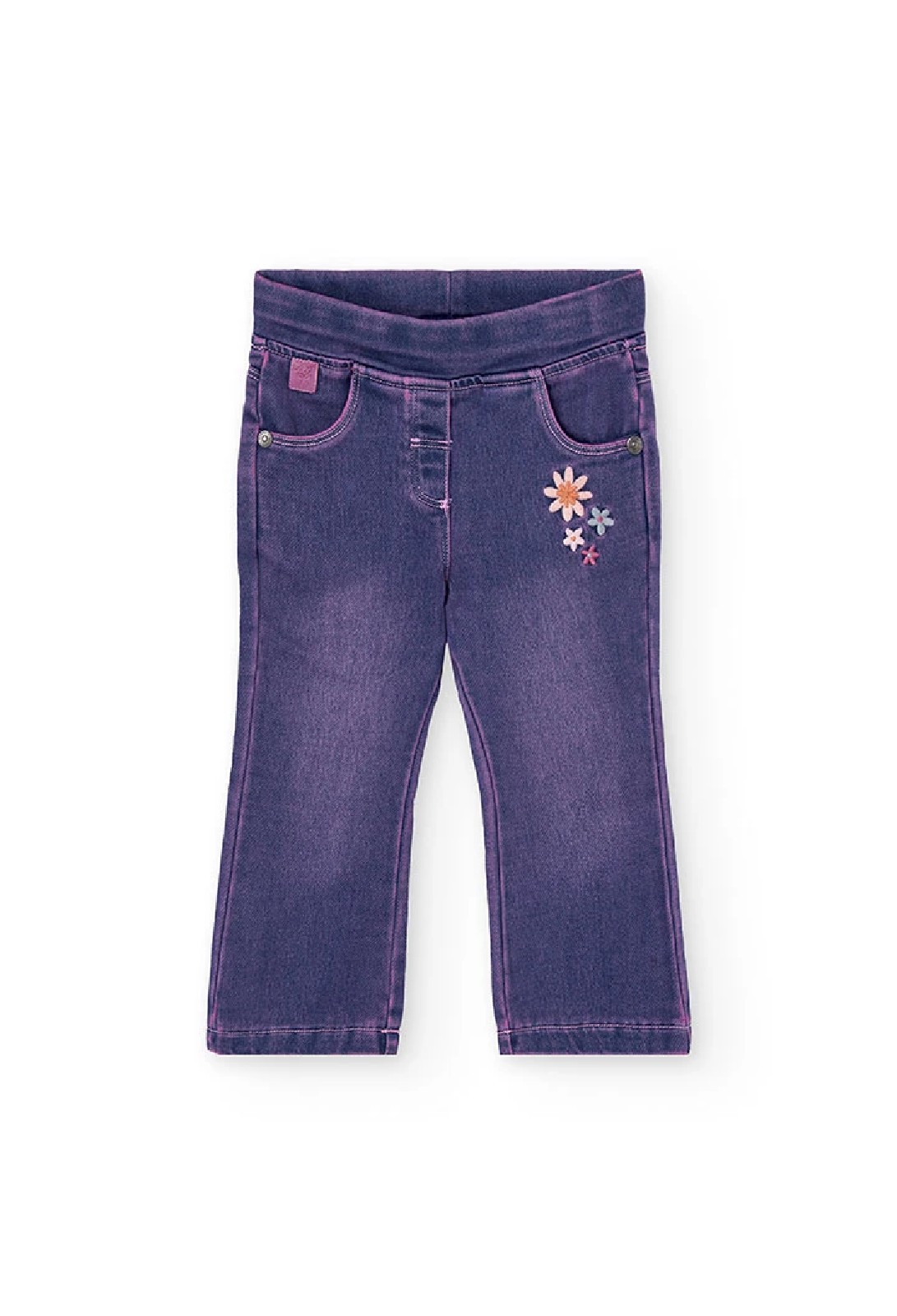 BOBOLI Pantaloni denim bambina lilla fiori ricamati LAVADO DIRTY