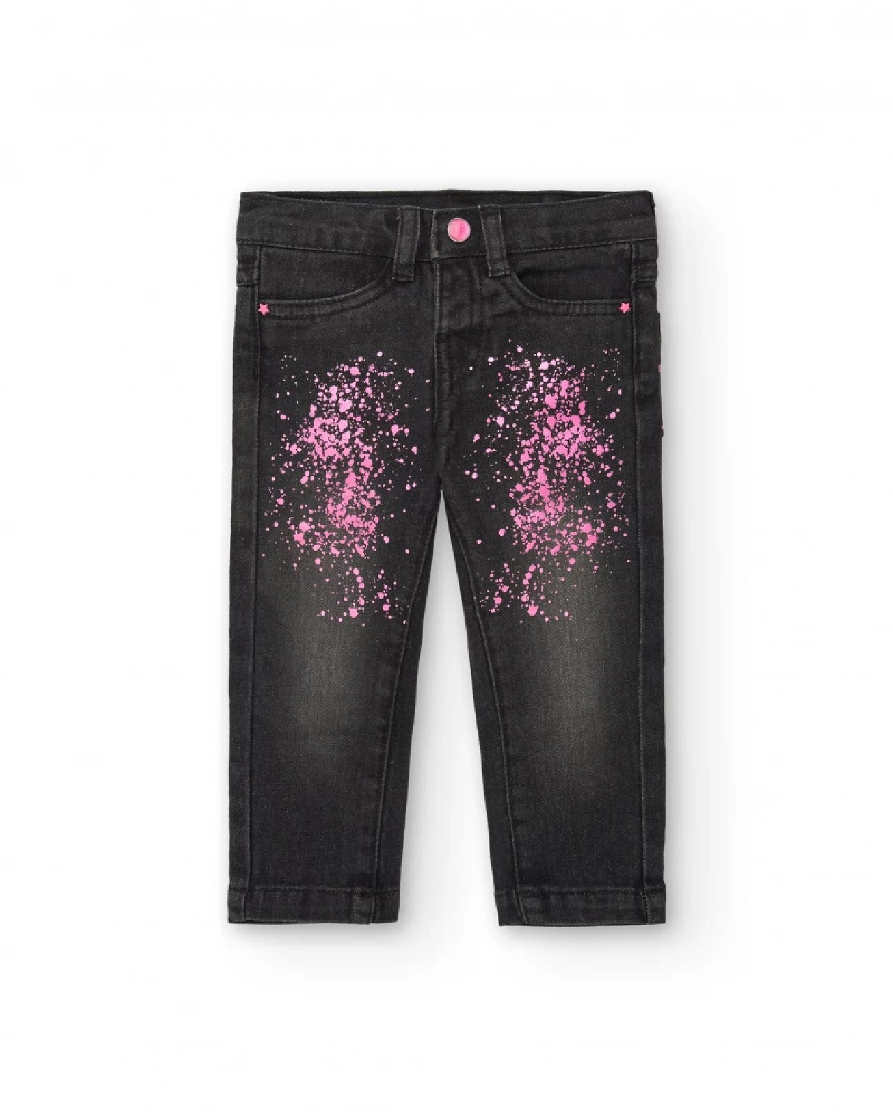 Tuc Tuc Pantaloni in denim grigio da bambina con stampa a schizzi della collezione Cosmic Girl GREY
