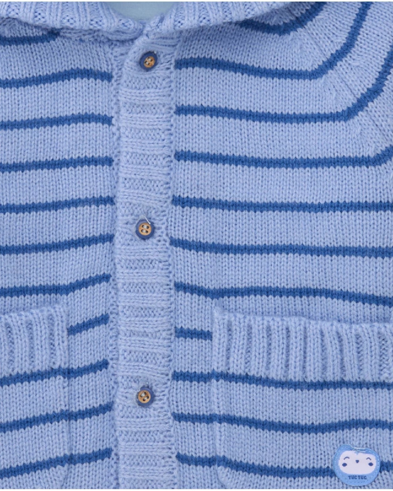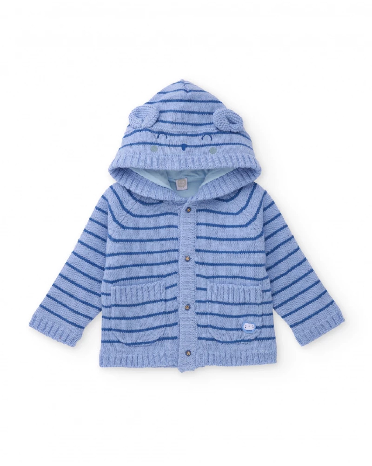 Tuc Tuc Cardigan in maglia per bambino in tonalità di blu con cappuccio e orecchiette 11398749 BLUE