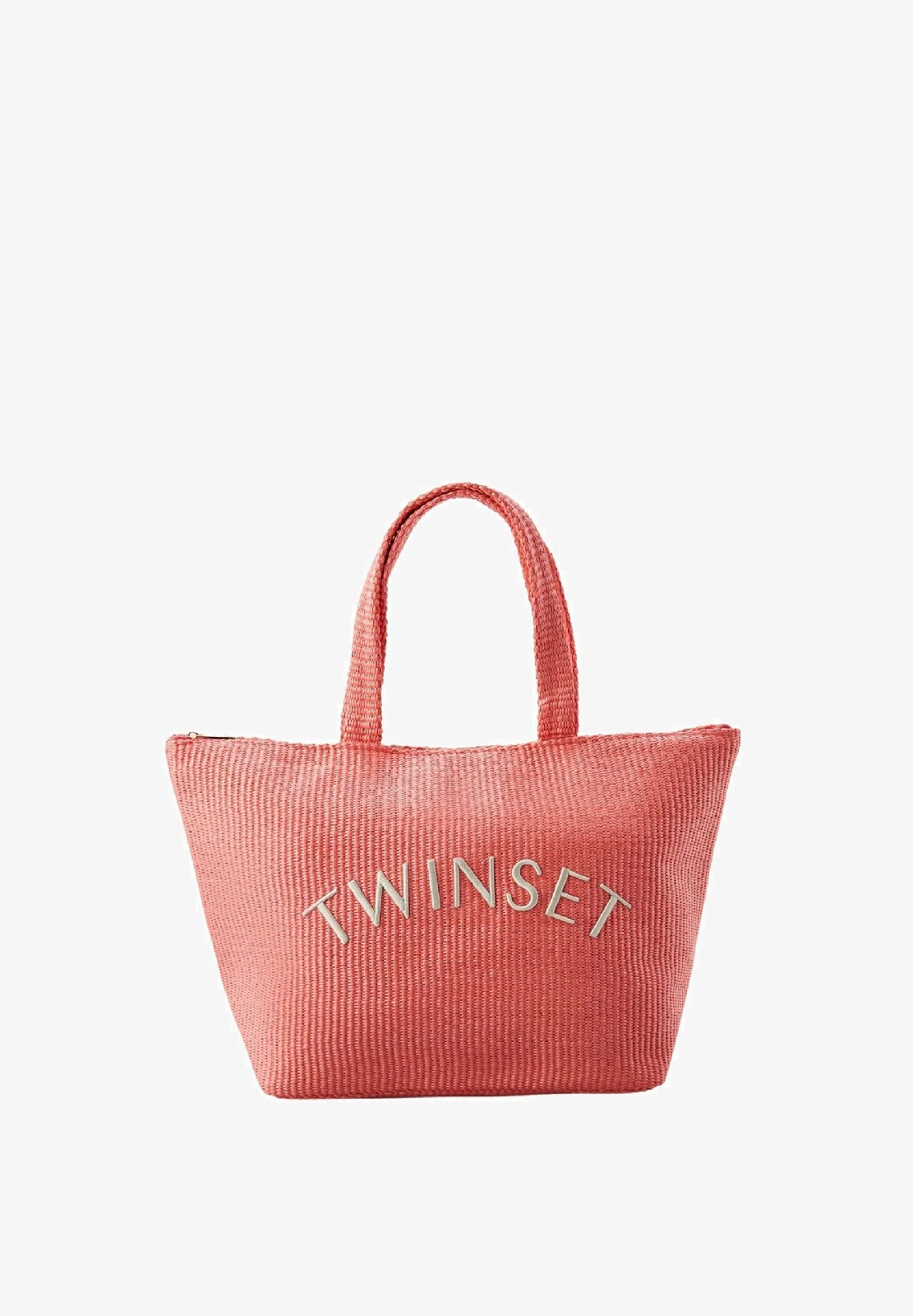 Twin Set Borsa shopper in juta con frange 251LM8ADD CORAL SUNSET