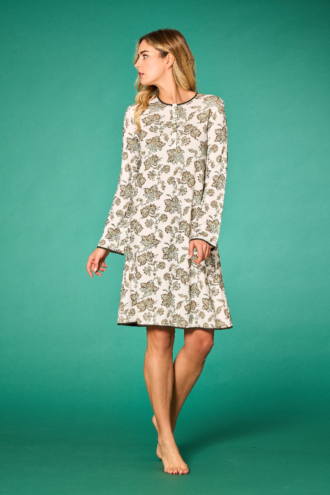 BISBIGLI camicia da notte in viscosa fantasia PANNA / MUSCHIO