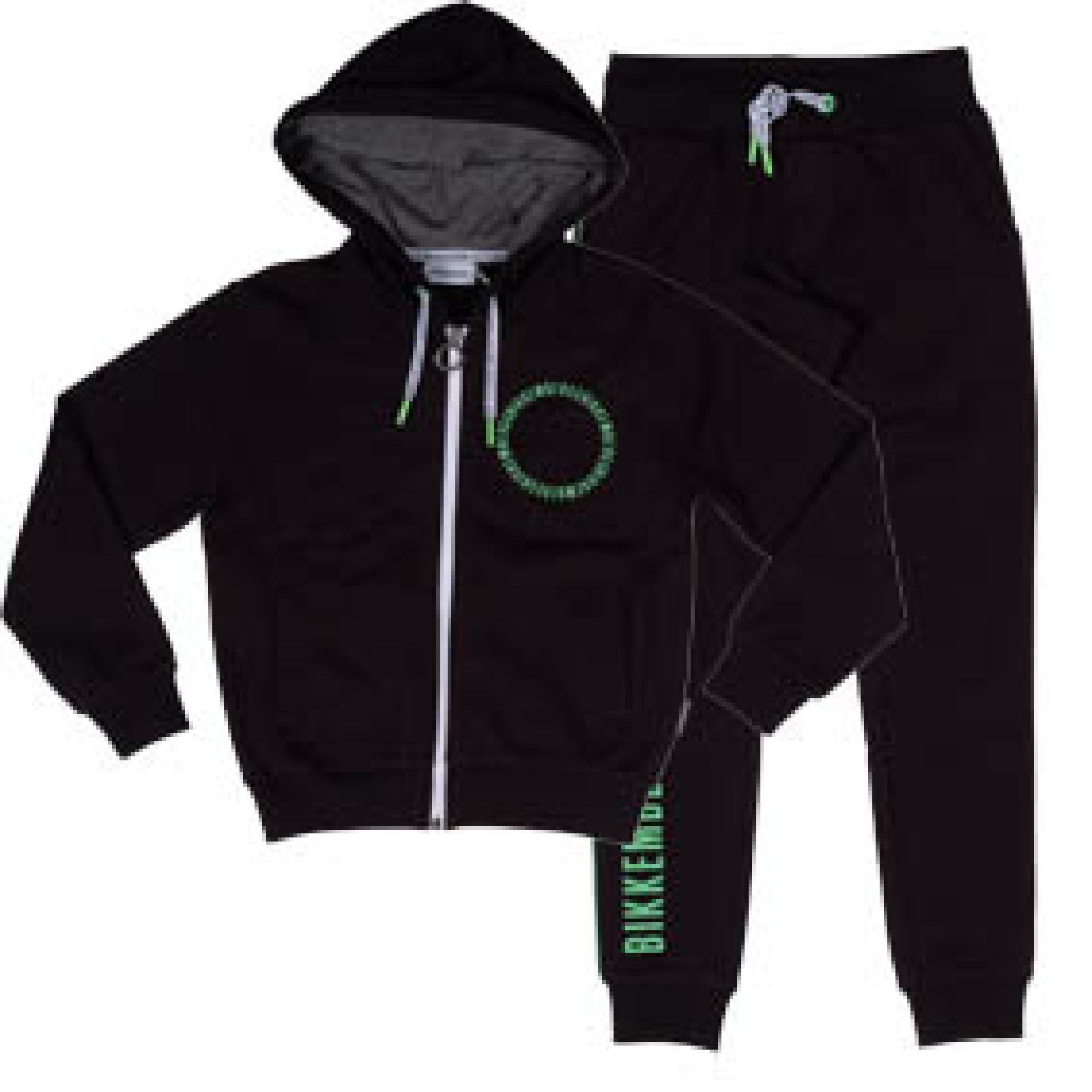 BIKKEMBERGS KIDS completo tua felpata maglia cappuccio e zip e pantalone tasche logo verde fluo bk1365