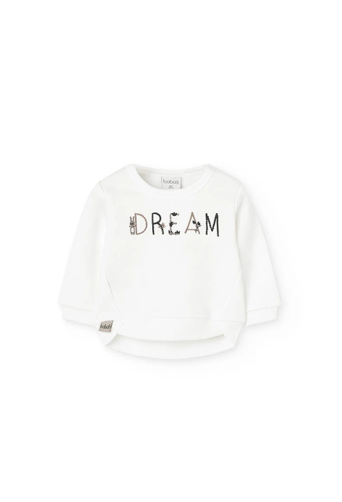 Set di felpa e pantaloni in maglia stampata, ideale per neonate nelle stagioni autunnali e invernali. Felpa bianca con la scritta “DREAM” e piccoli dettagli di animali, apportando un tocco divertente e affascinante. Pantaloni beige che completano il set con una stampa di pois in vari colori, aggiungendo stile e dinamismo. Realizzato in un tessuto morbido, garantisce comfort e calore per la pelle delicata del bambino. Disponibile in taglie da 1 mese a 24 mesi, è l’opzione perfetta per mantenere la tua piccola al caldo e alla moda.