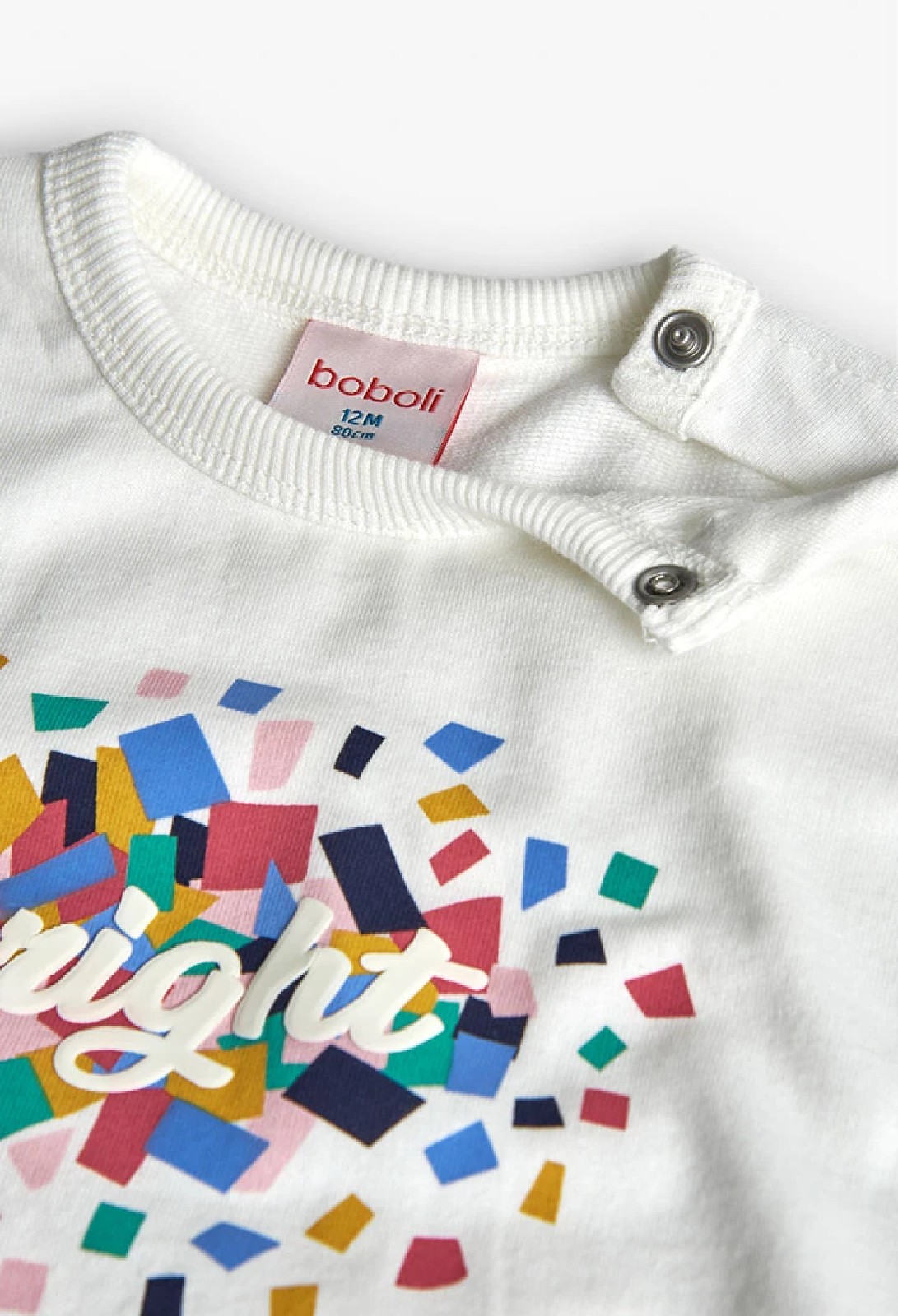Felpa per bambina ideale per l’autunno e l’inverno, realizzata in un morbido tessuto a maglia bianco che difre comfort e calore quotidiano. Una stampa colorata con la parola “Bright” aggiunge un tocco vibrante al design. Con collo rotondo e maniche lunghe, è perfetta per i giorni freschi. Disponibile in taglie da 12 mesi a 10 anni, è un’opzione versatile che completa facilmente qualsiasi guardaroba, portando gioia e stile all’abbigliamento della tua piccola.