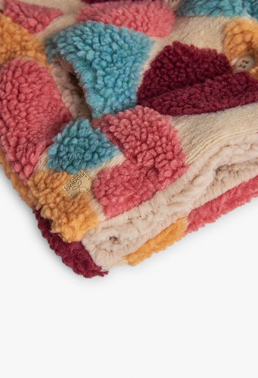 Giacca di panno per bambina ideale per i giorni più freddi dell’anno. Questo cappotto è realizzato in panno di alta qualità con cerchi di vari colori, difrendo calore e stile. Progettato con una chiusura a bottoni nella parte anteriore, ne facilita l’indossamento. Disponibile in taglie da 12 mesi a 10 anni, si abbina perfettamente con pantaloni o vestiti, creando un insieme elegante e accogliente per le uscite invernali.