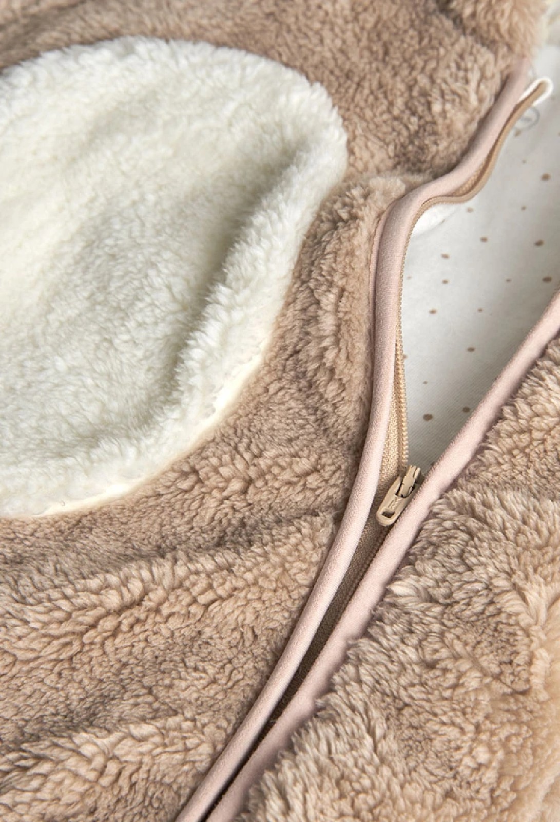 Tutina in tessuto di pelo morbido di colore beige per neonato, un capo delicato e accogliente, ideale per la pelle sensibile dei più piccoli. Realizzata in tessuto a maglia morbida, difre comfort e traspirabilità, risultando perfetta per le stagioni invernali. Il suo design in colore beige neutro permette di abbinarla facilmente. Disponibile in taglie che vanno da 1 mese fino a 2 anni, si adatta comodamente alla crescita del tuo bambino. È una scelta elegante e funzionale per ogni occasione.