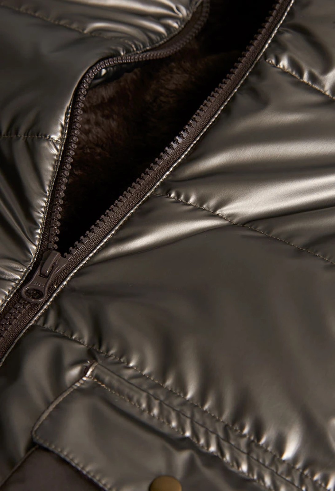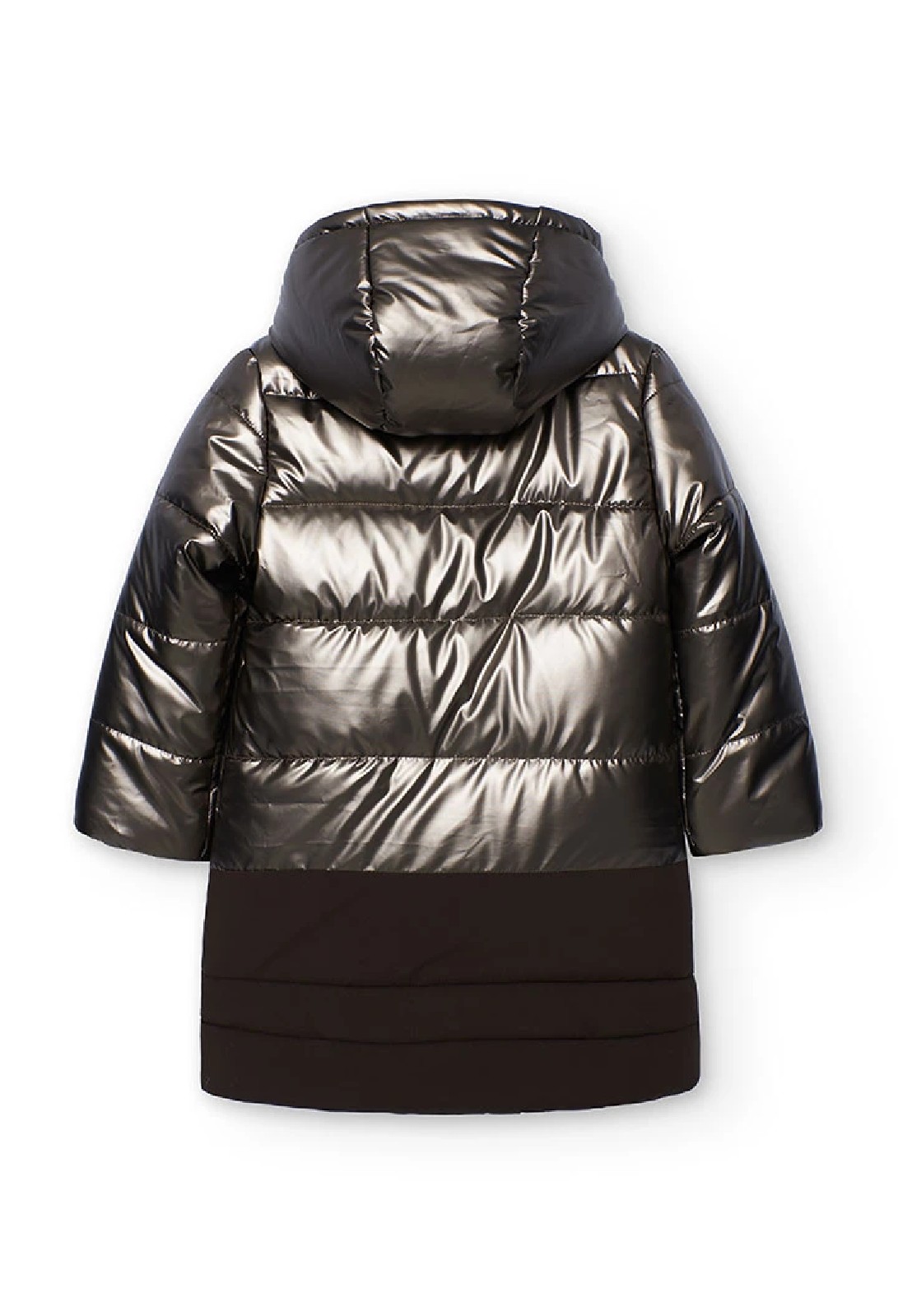 Parka in tessuto tecnico marrone per bambina, perfetta per affrontare l’inverno con stile e comfort. Realizzata in un materiale resistente e caldo, garantisce un’eccellente protezione contro il freddo e la pioggia. Questo design incorpora un cappuccio regolabile e chiusura con zip frontale, ideale per l’uso quotidiano. Include pratiche tasche anteriori per conservare piccoli oggetti o tenere le mani calde. Disponibile in taglie da 2 a 14 anni, si abbina facilmente con pantaloni o leggings durante i mesi freddi.