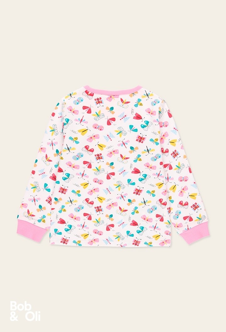 COMPOSIZIONE:Maglione:95% cotone, 5% elastan Pantaloni:95% cotone, 5% elastan. Pigiama fantasia farfalle.