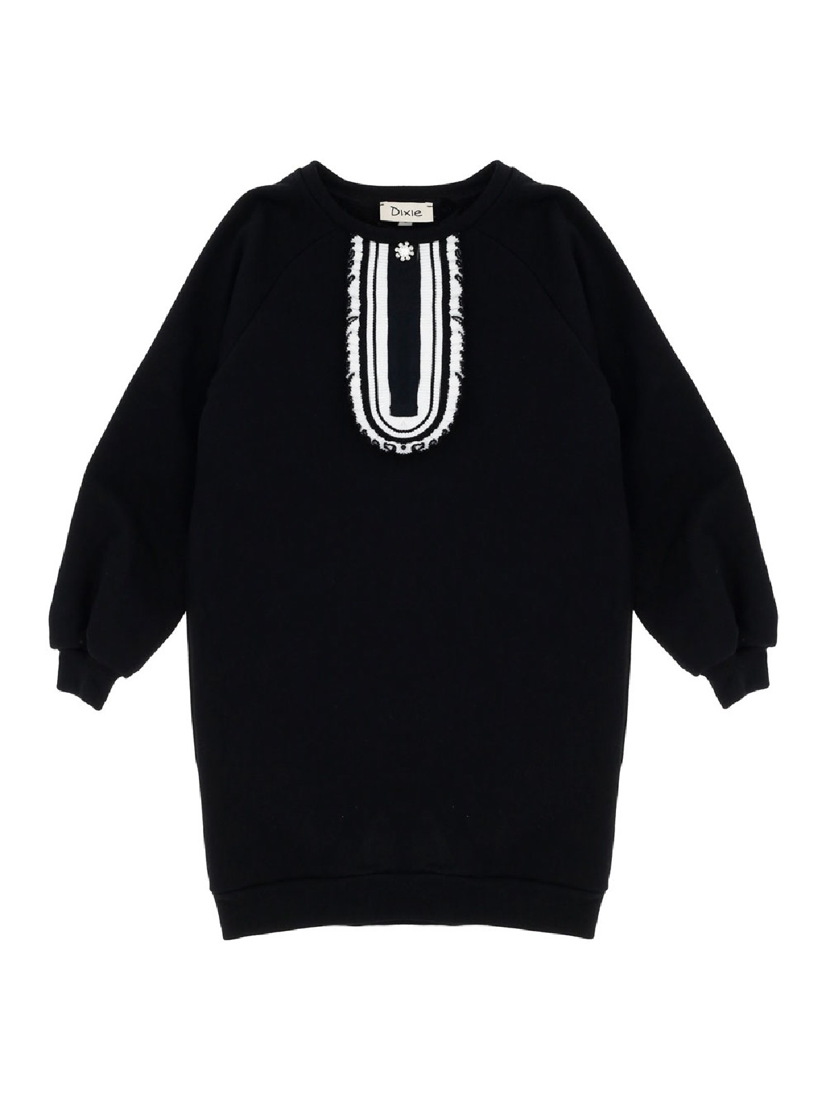 DIXIE abito bambina mini con spilla e ruches, cotone caldo nero