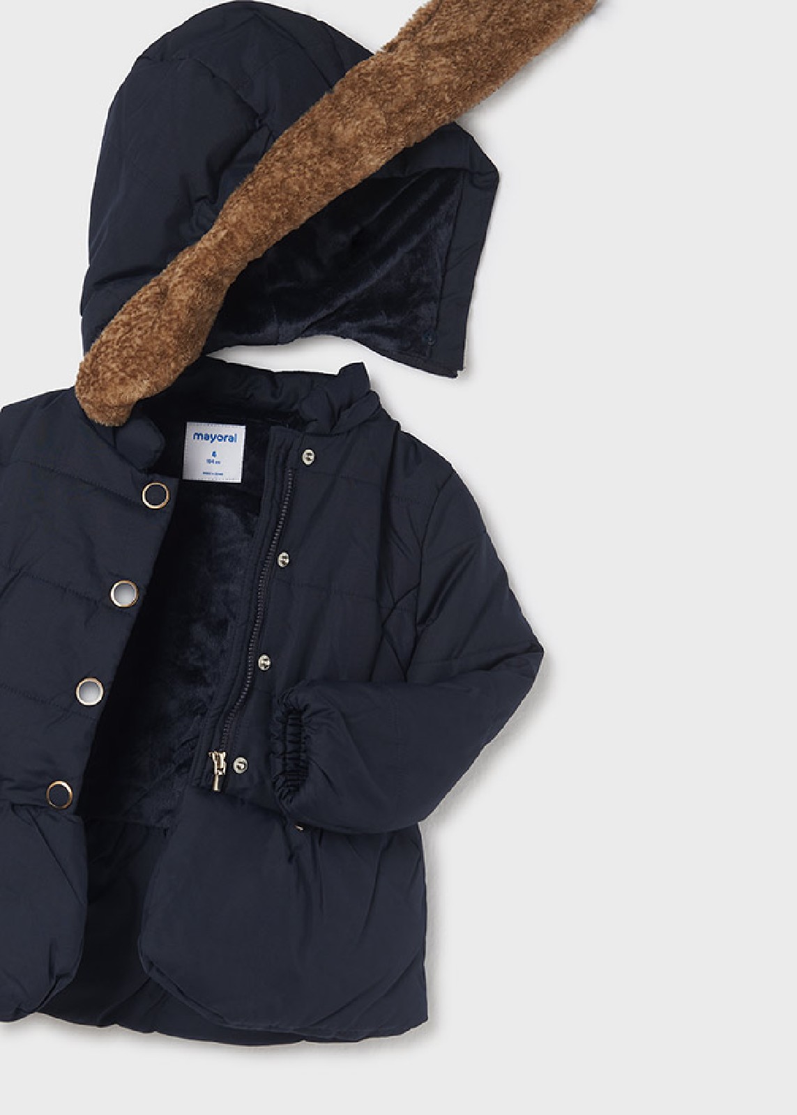 MAYORAL 4486 Giubbotto blu da bambina con cappuccio removibile, imbottito ECOFRIENDS MARINO