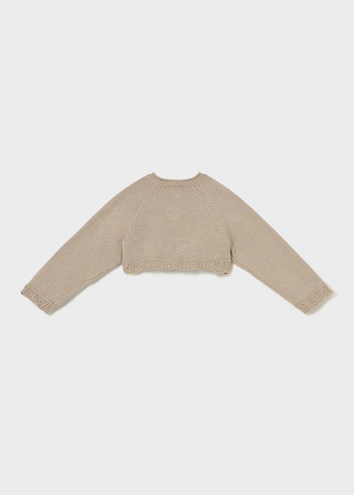 Cardigan manica lunga per bebé. Modello corto bolerino. Chiusura con bottone sul colletto per facilitare la vestibilità. Elementi decorativi: dettagli traforati. Modelo perteneciente a nuestra colección Mayoral Basic, una prenda esencial en su armario para completar cualquier look.