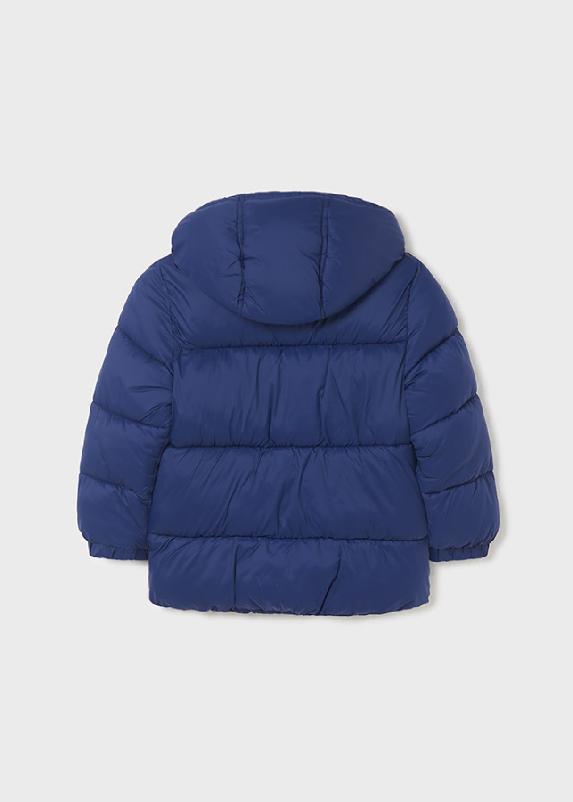 giaccone manica lunga per bambino. modello con cappuccio. chiusura anteriore con cerniera nascosta.