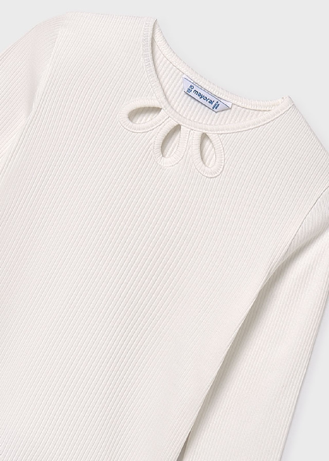 Maglietta manica lunga per ragazza. Girocollo. Tessuto a costine. Elementi decorativi: apertura decorativa.