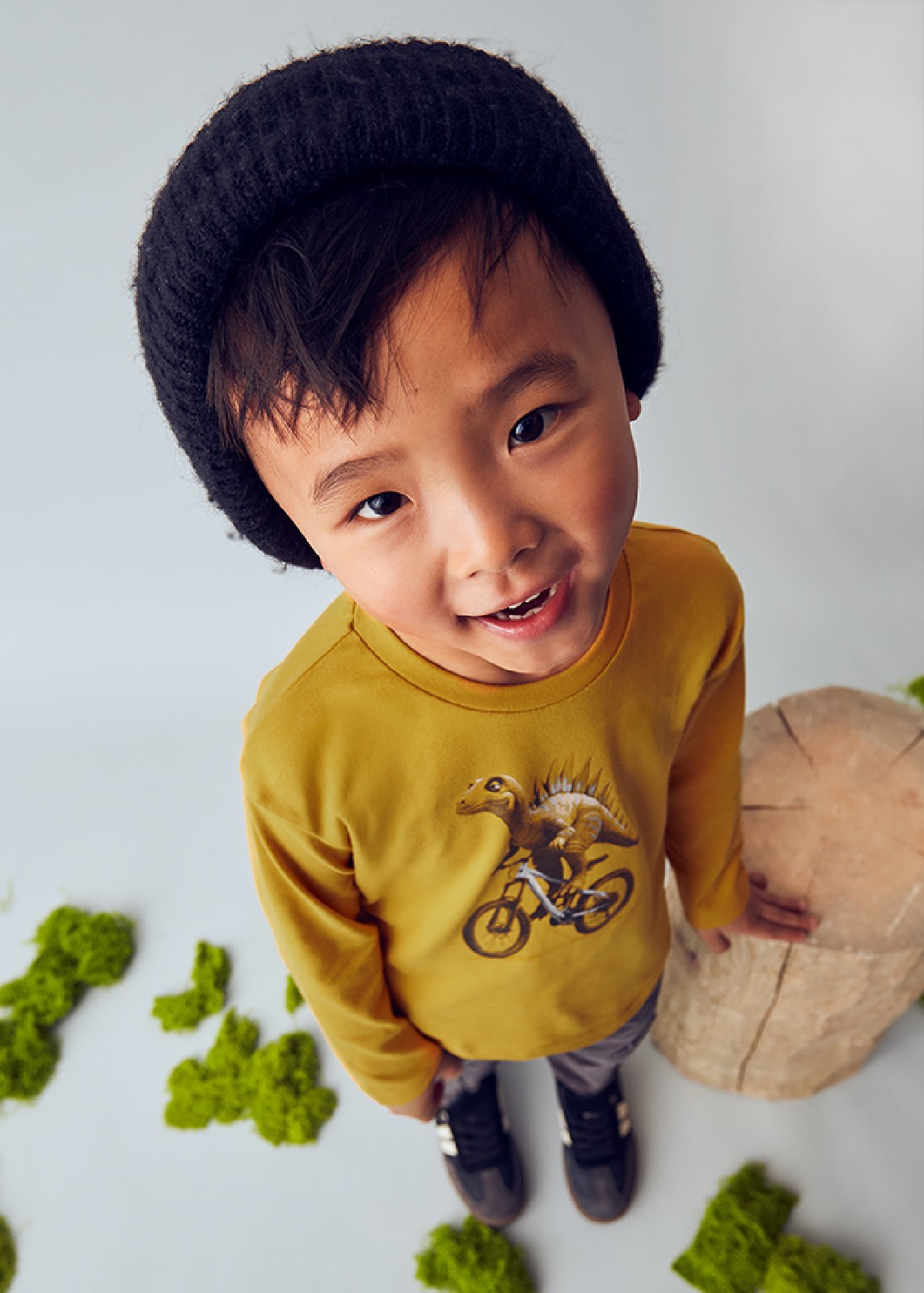 Maglietta manica lunga per bambino. Girocollo. Elementi decorativi: Serigrafia (print). Scegliendo i nostri prodotti in cotone, supporti il nostro impegno nell’iniziativa Better Cotton. Il cotone Better Cotton è ottenuto attraverso un sistema di bilancio di massa e non può essere fisicamente ricondotto ai prodotti finali. tuttavia, i produttori di cotone beneficiano della domanda di Better Cotton in volumi equivalenti.