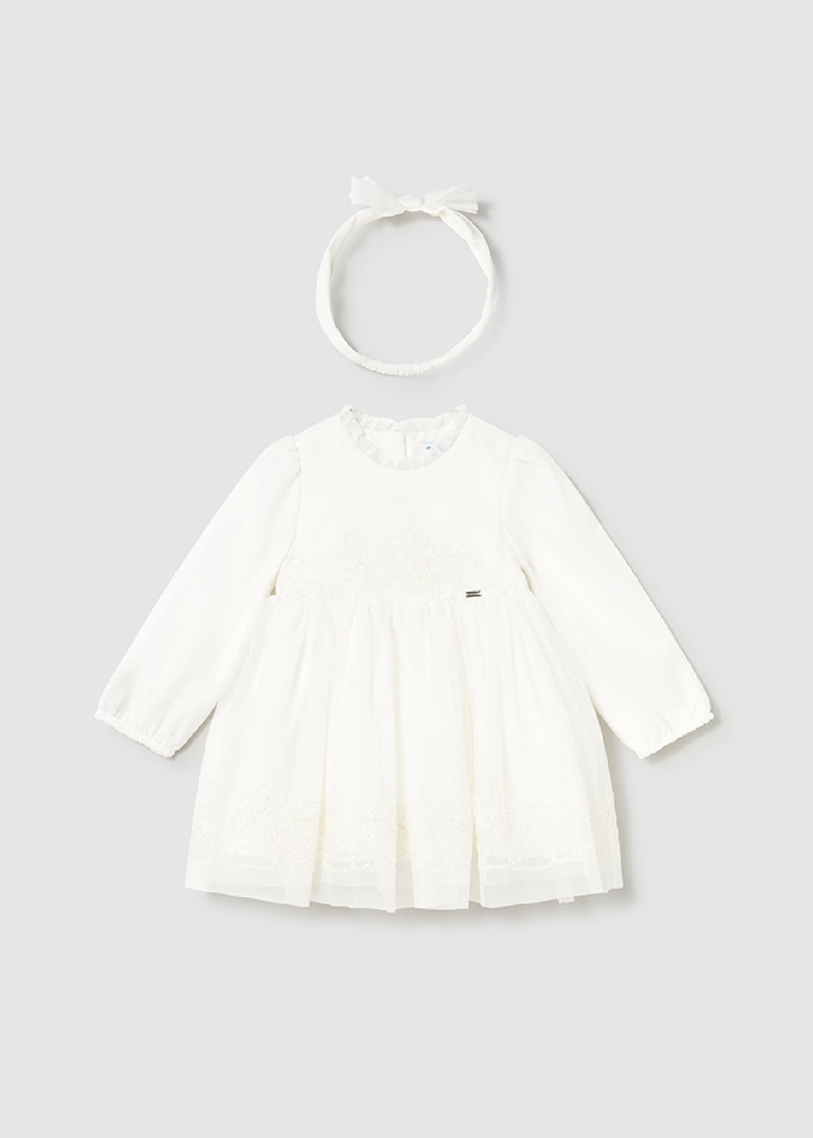 MAYORAL Vestito cerimonia tulle ricamato neonata Ecrù