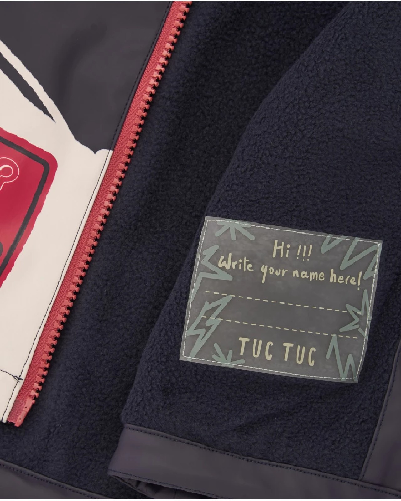 Impermeabile blu navy per bambino con chiusura a zip sul davanti e cappuccio decorato con orecchie e volto di cagnolino in rilievo. Stampa colorata con tema investigatore e tasca applicata. Interno foderato in pile. Capo originale e pratico per le giornate di pioggia.