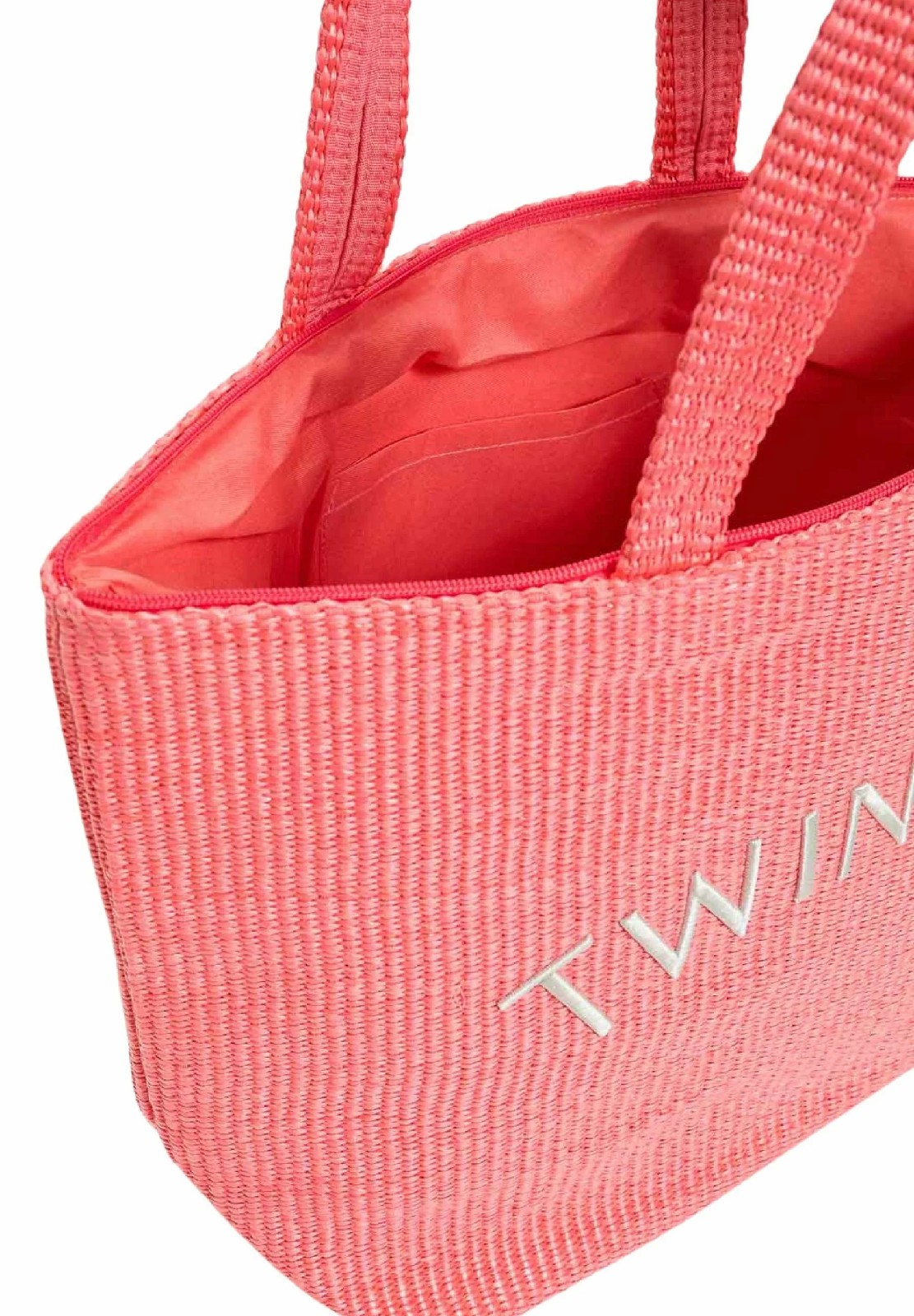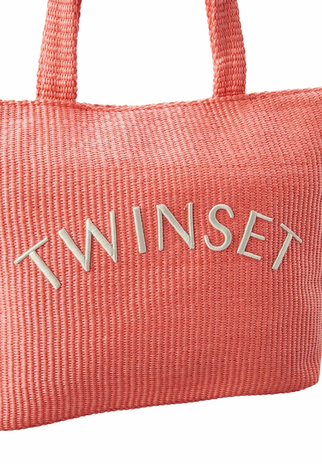 TOTE IN MATERIALE EFFETTO PAGLIA C/LOGO RICAMATO.CORAL SUNSET