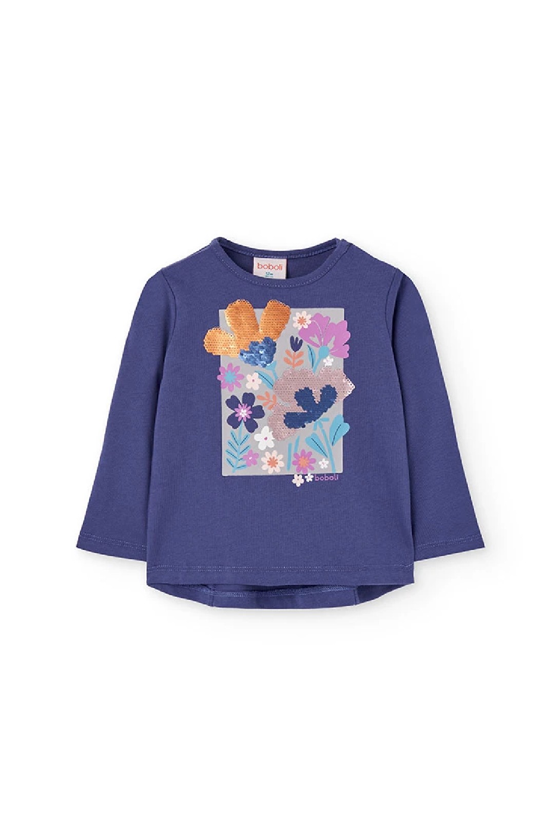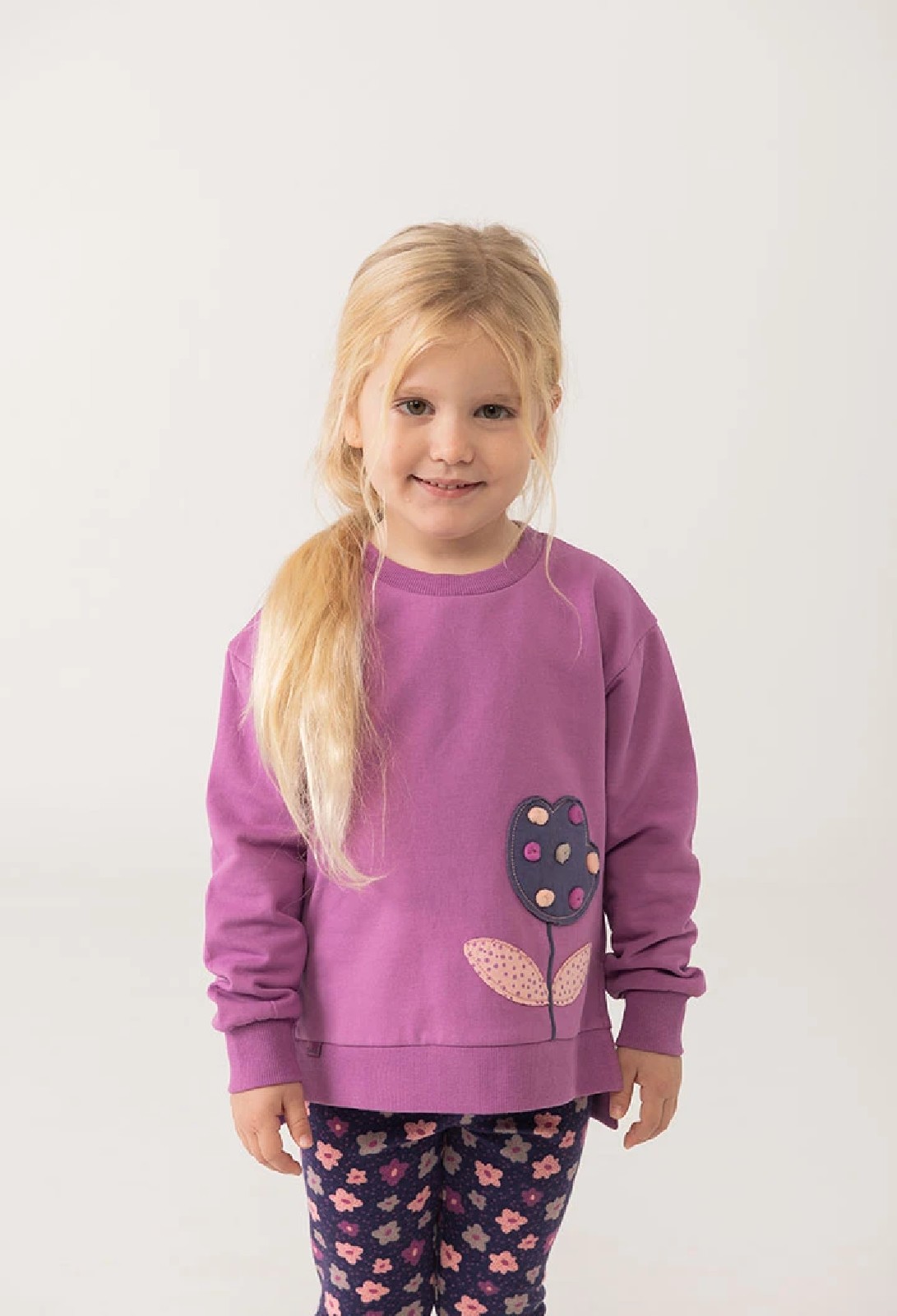 BOBOLI Maglietta bambina in maglia lilla con fiori UVA