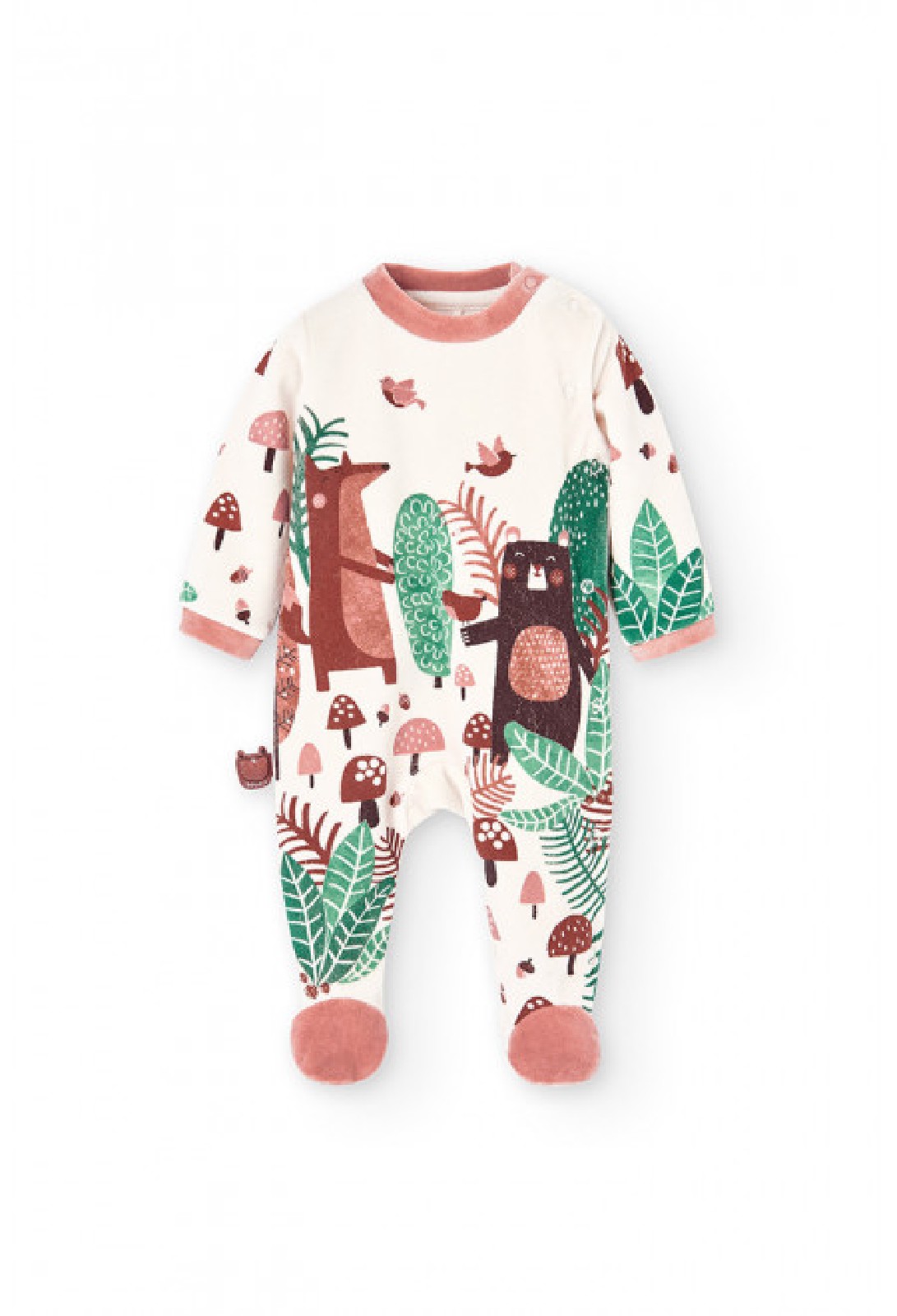 BOBOLI Tutina in ciniglia unisex stampata chiusura laterale per neonati talco