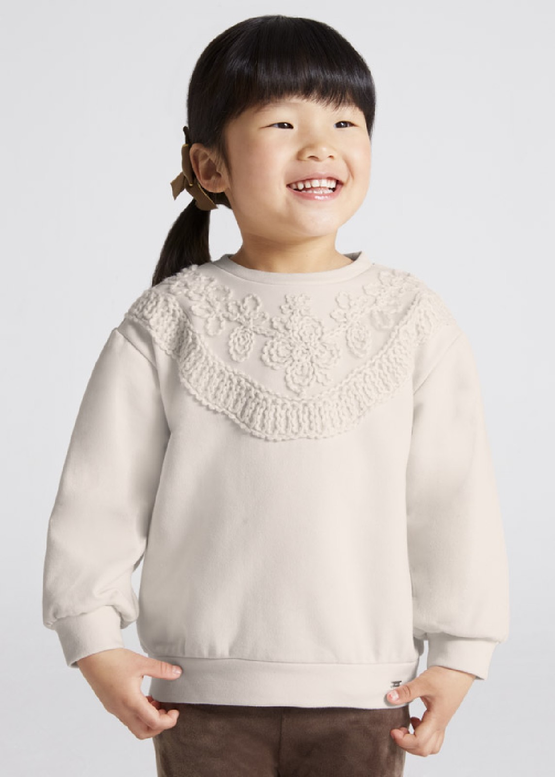 MAYORAL 4477 felpa ricamata manica lunga, beige chiaro Cecio